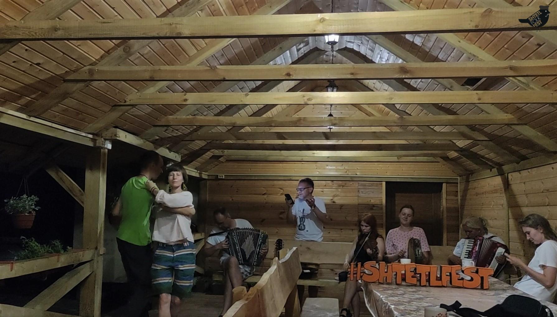 Вечарам шостага дня да нас далучыўся стваральнік сайта GRAJ.BY Андрэй Бароўскі (Гародня). Акрамя таго, што з ім можна было пагаварыць, як з заўзятым збіральнікам музычнага фальклору і звестак пра беларускіх народных музыкаў, Андрэй яшчэ і запальна грае на гармоніку. Улічваючы, што мы апынуліся на беларуска-польскім памежжы, было цалкам натуральна граць, спяваць і танчыць польска-яўрэйскі міжваенны рэпертуар.